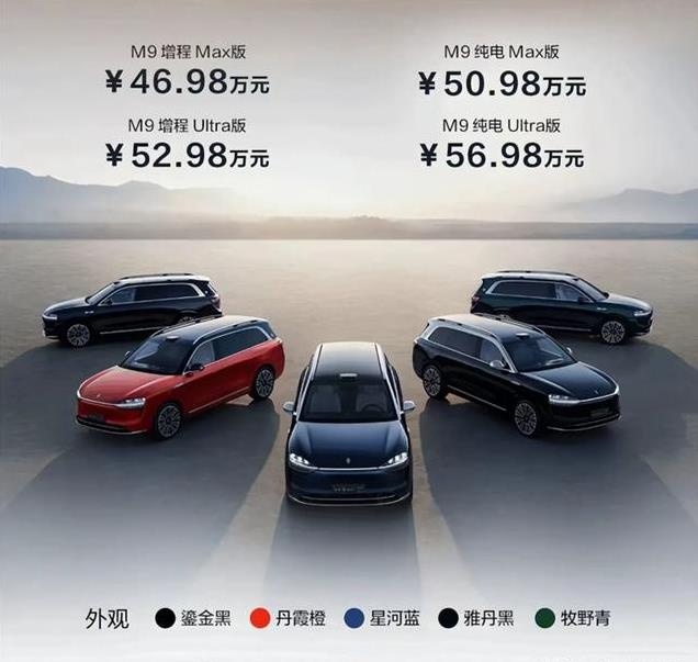 问界M9价格在46.98~56.98万期间,提供增程版和纯电两大动力版本,增程版车型凭借不同容量的电池包,分别能实现225km和275km的纯电续航能力,综合续航里程可以达到1362km~1402km,给消费者不同的选择。