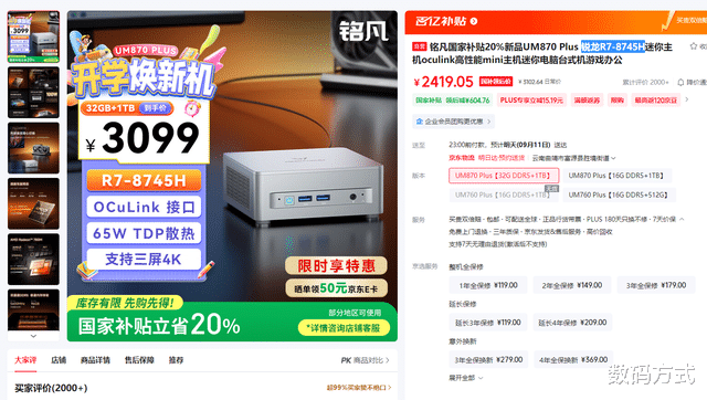 最重要的是,UM870 Plus的价格定位相当亲民,以中端的价格提供了接近高端设备的性能,性价比极高,目前国补下来2400元多一点就能入手32+1T版本。
