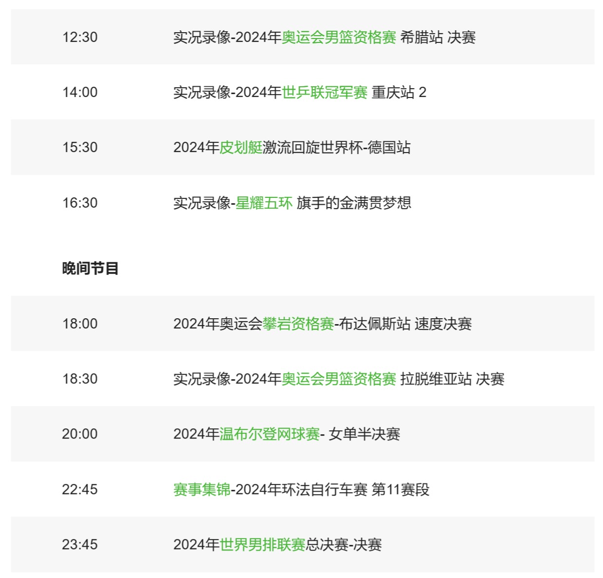 20:00 2024年温布尔登网球赛-女单半决赛 (版权原因不 可回看)