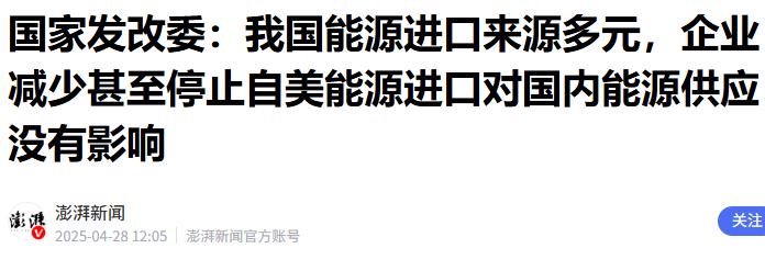 3.2025-04-28《国家发改委:我国能源进口来源多元,企业减少甚至停止自美能源进口对国内能源供应没有影响》-澎湃新闻