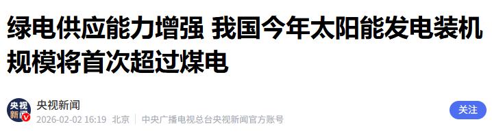 2.2026-02-02《绿电供应能力增强 我国今年太阳能发电装机规模将首次超过煤电》-央视新闻