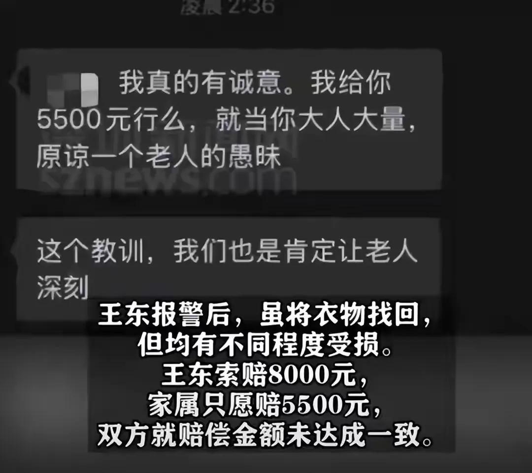 这话一出口,李芳当场就不乐意了。“他说衣服值一万多,可连个购买记录、发票都没给我们看,我们怎么知道是不是真的值这个价?”李芳觉得委屈,她坦言,老人家确实有错,但衣服本身也穿过一段时间,肯定得算折旧,不能按原价赔。“我想着大家都是邻居,低头不见抬头见,就主动说赔5500块,也算尽到心意了。”