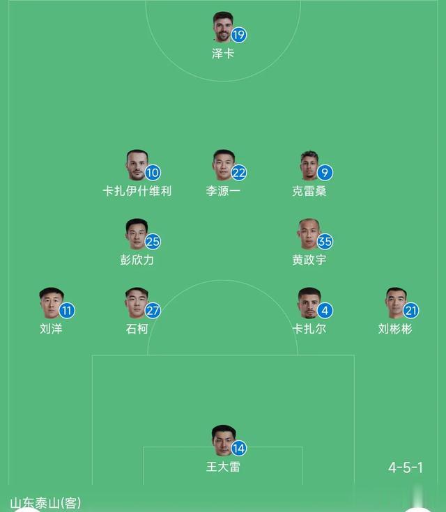 不同前两场的是泰山队最好的中场(崔康熙的原话)彭欣力首发出任左后腰,替代了马德鲁加或者谢文能首发。而伤病没人可用的右边卫则由刘彬彬镇守。