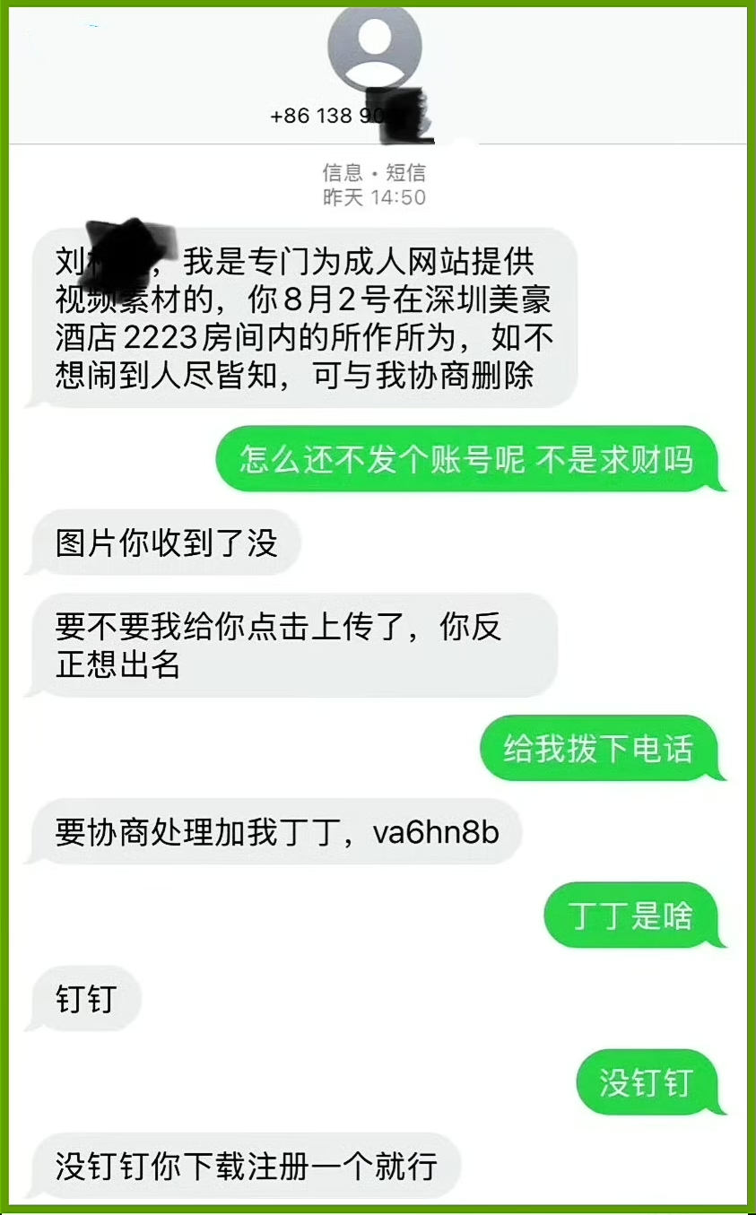 事情发生在8月2日,一对情侣入住深圳美豪酒店(罗湖笋岗中心店)。9月初的时候,男方吴先生突然收到陌生人的短信,对方自称“为成人网站提供视频素材”,并发送了吴先生和女朋友在酒店的私密视频片段,继而要求吴先生支付3万元,否则就将完整视频发布到成人网站。