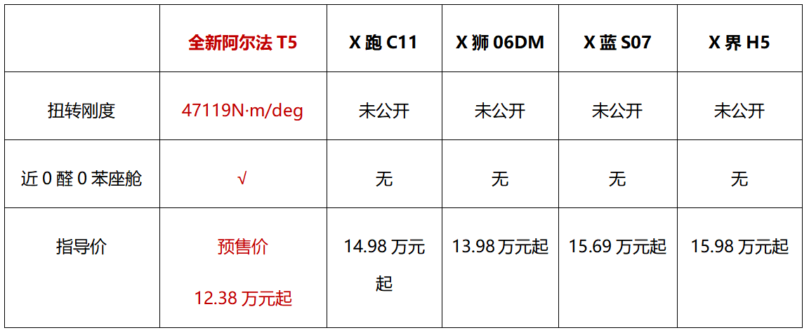 全新阿尔法T5采用1500MPa高强度热成型钢,高强钢及铝合金占比高达81%,扭转刚度达到了47,119N·m/deg,与之对比劳斯莱斯幻影的扭转刚度是40,000N·m/deg,“公路坦克”实至名归。