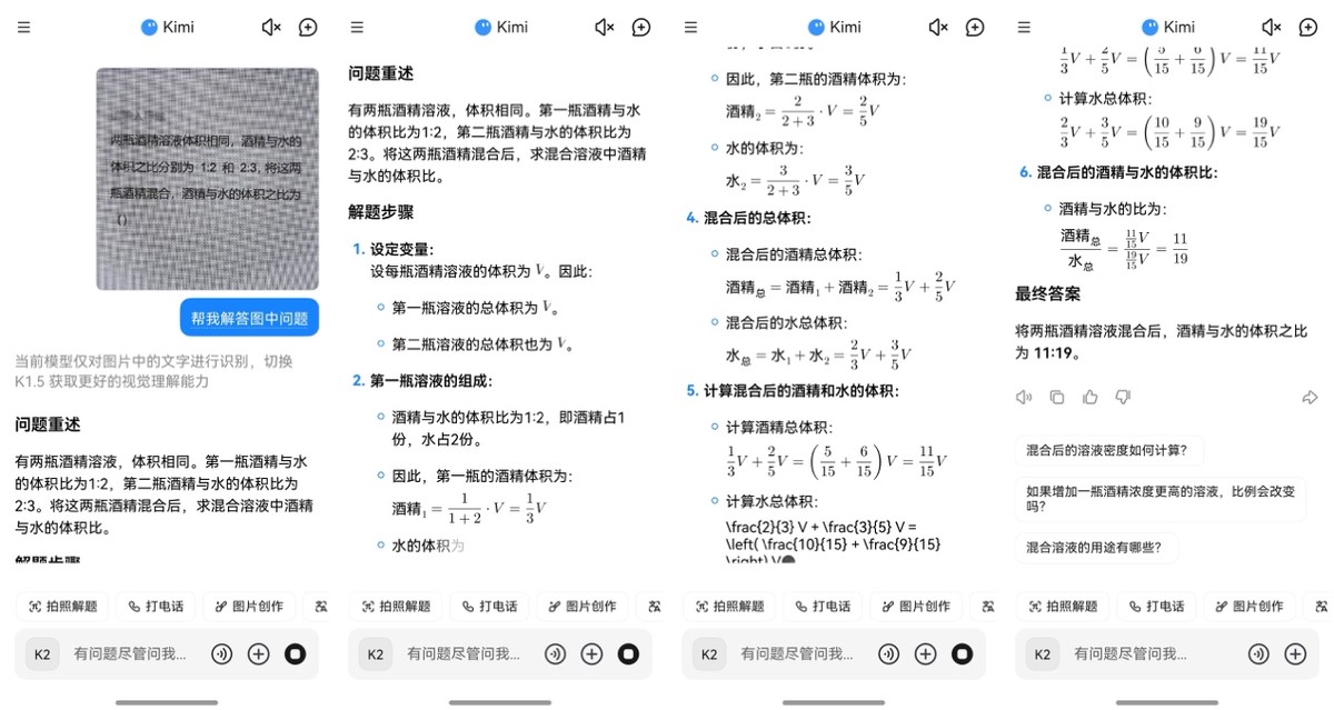 遇到复杂难懂的公式和理论,掏出手机用鸿蒙版Kimi拍一下让它帮忙讲解。如果有更复杂的问题,可以使用Kimi新升级的K2模型,解析得特别专业细致,连解题思路都能给梳理得清清楚楚。
