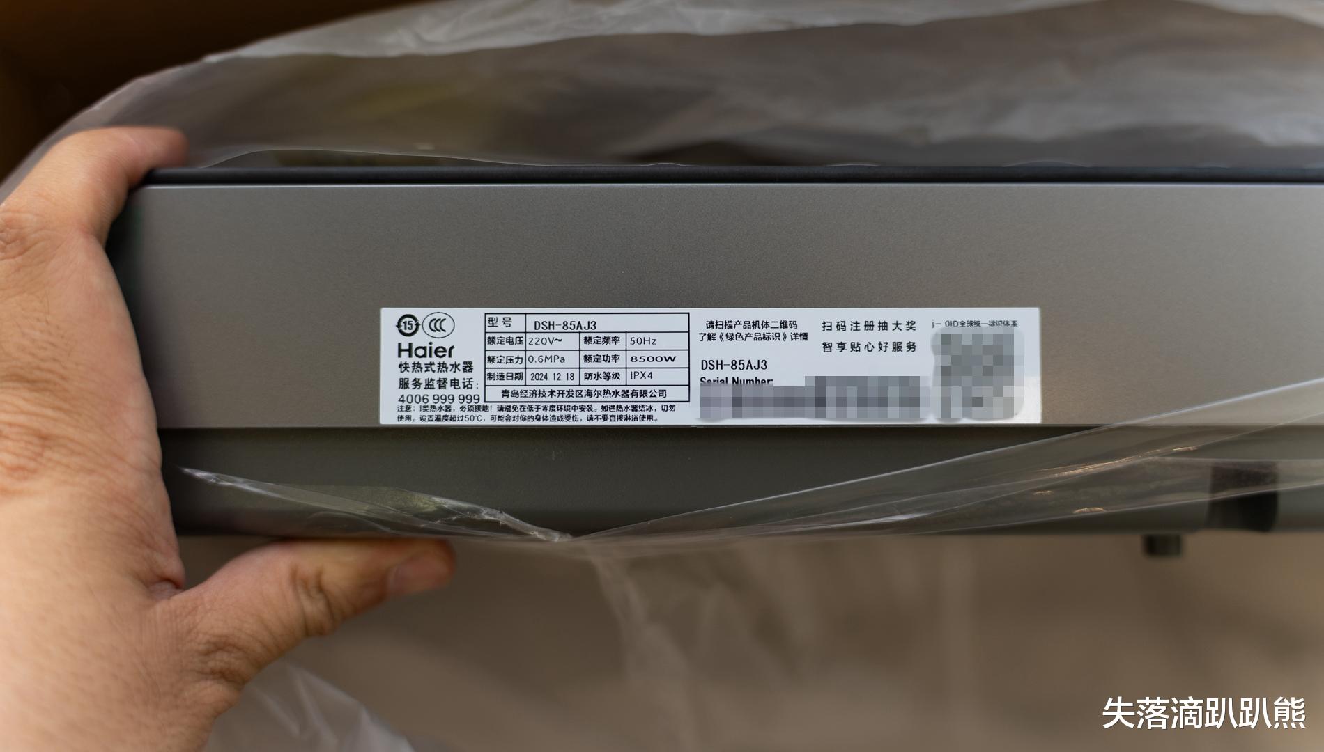 网上做了不少的攻略后,选择了这款价格偏高但是属于带有水伺服技术的最便宜的热水器,海尔DSH-85AJ3即热式电热水器,其峰值功率最高可达8.5kW。