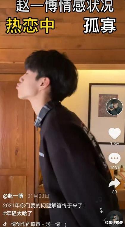 一直到2021年年初,赵一博发短视频公开感情状况,称自己热恋中。