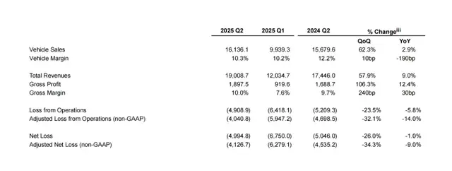 2025年Q2,蔚来交付72,056台,同比增25.6%,环比大涨71.2%;营收190.1亿元,同比增9.0%,环比增57.9%;综合毛利率回升至10.0%;现金储备增至272亿元。