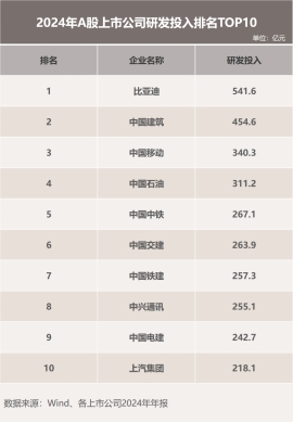 事实上,比亚迪对研发的重视是其长期深耕的战略选择。作为A股公认的“研发之王”,其2024年研发投入已达542亿元,同比增长36%,首次登顶A股年度研发投入榜首。