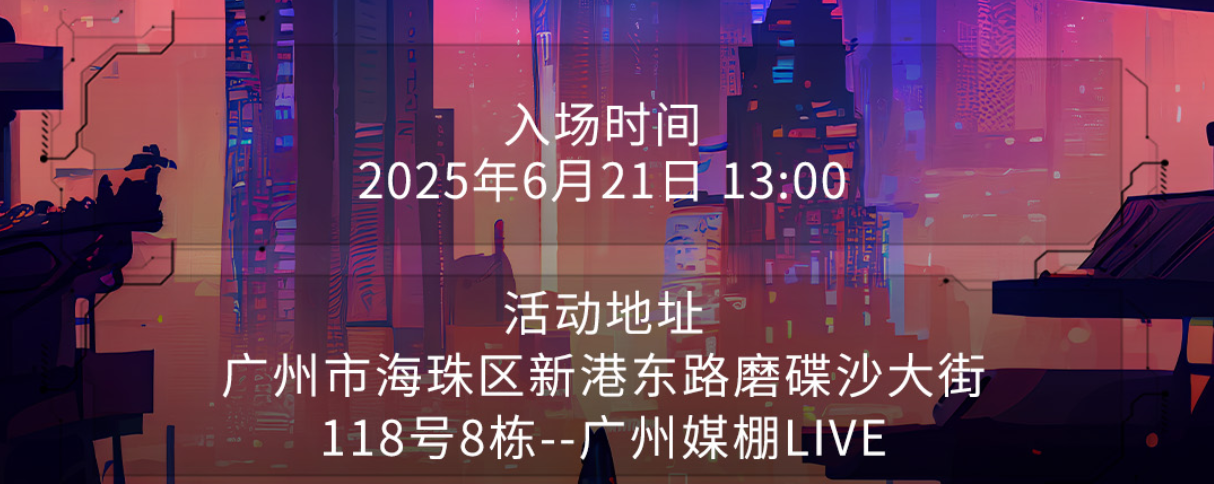 活动地址:广州市海珠区新港东路磨碟沙大街118号8栋 广州媒棚LIVE