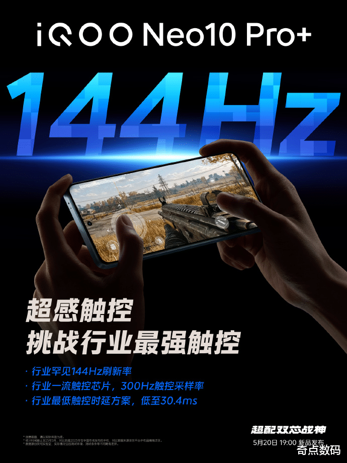 对于游戏党来说,iQOO Neo10 Pro+简直是福音。高清超感触控,144Hz刷新率搭配300Hz触控采样率,触控时延低至30.4ms,让你在游戏中连招快人一步,轻松掌控每一个“超神瞬间”。再加上7K冰穹VC大面积散热,以及LPDDR5X Ultra与UFS4.1的加持,热门手游都能轻松满帧运行,再也不用担心游戏卡顿影响心情。