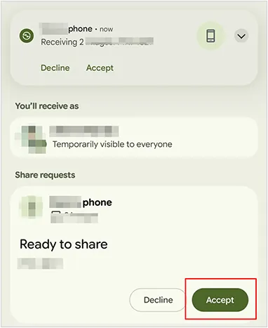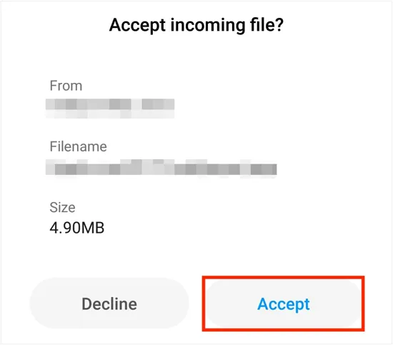 您的 Android 手机上将会弹出一条通知。点击“接受”即可接收文件。
