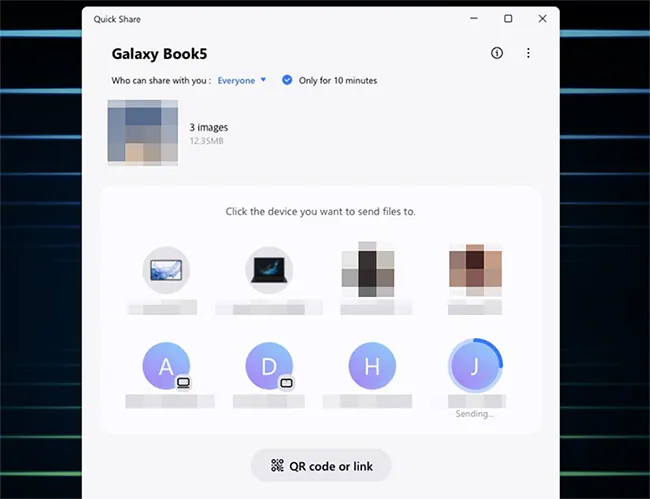 在电脑上,右键单击要发送的文件,然后选择“使用快速共享”进行共享。您的 Android 手机将出现在附近的设备列表中。选择您手机的名称。