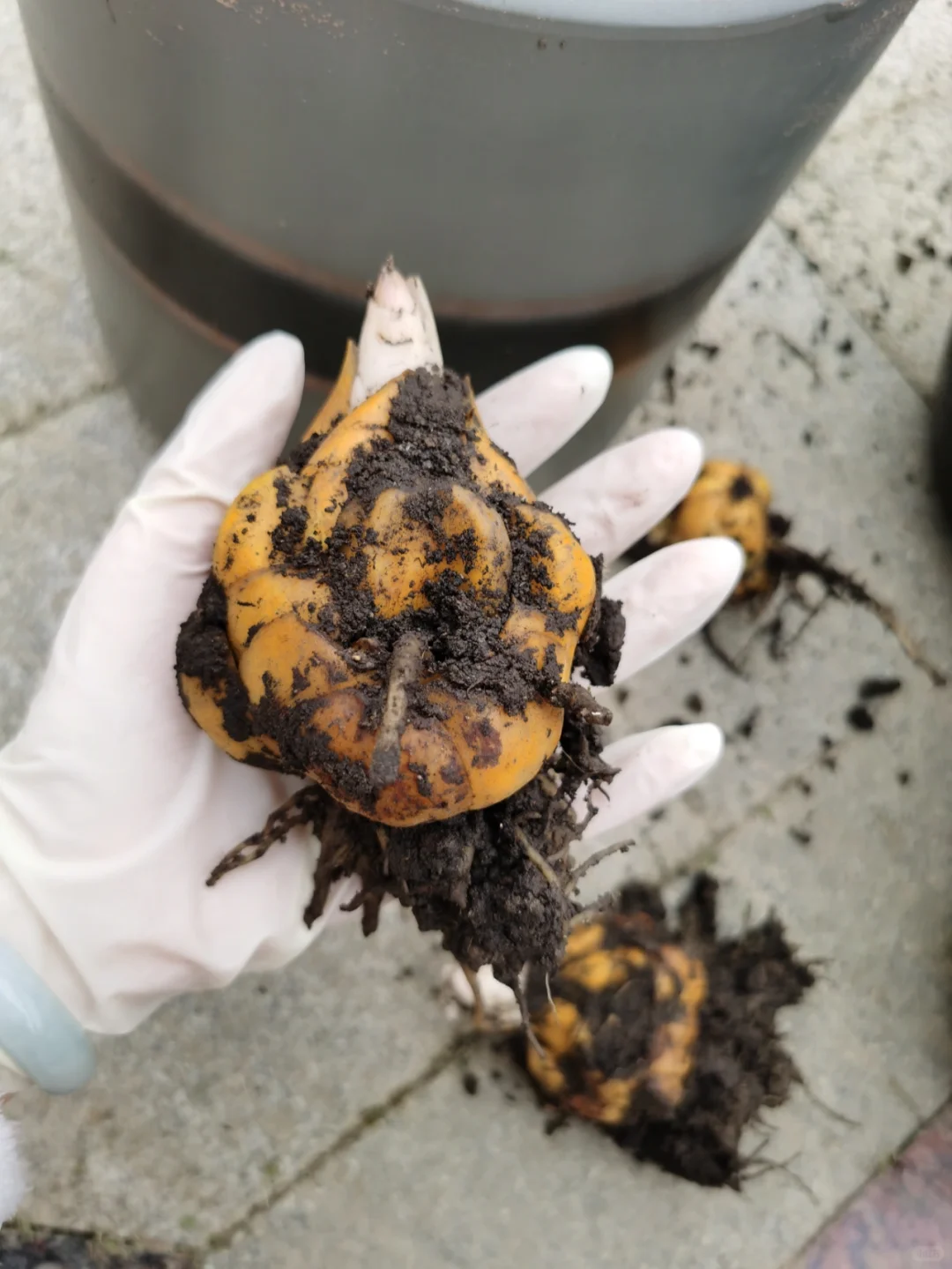 种球到手之后必须立马处理,去掉老皮和老根,用多菌灵或高锰酸钾水溶液浸泡杀菌消毒,之后晾干在根部涂抹少量的生根剂,加速生根,缩短生长周期。