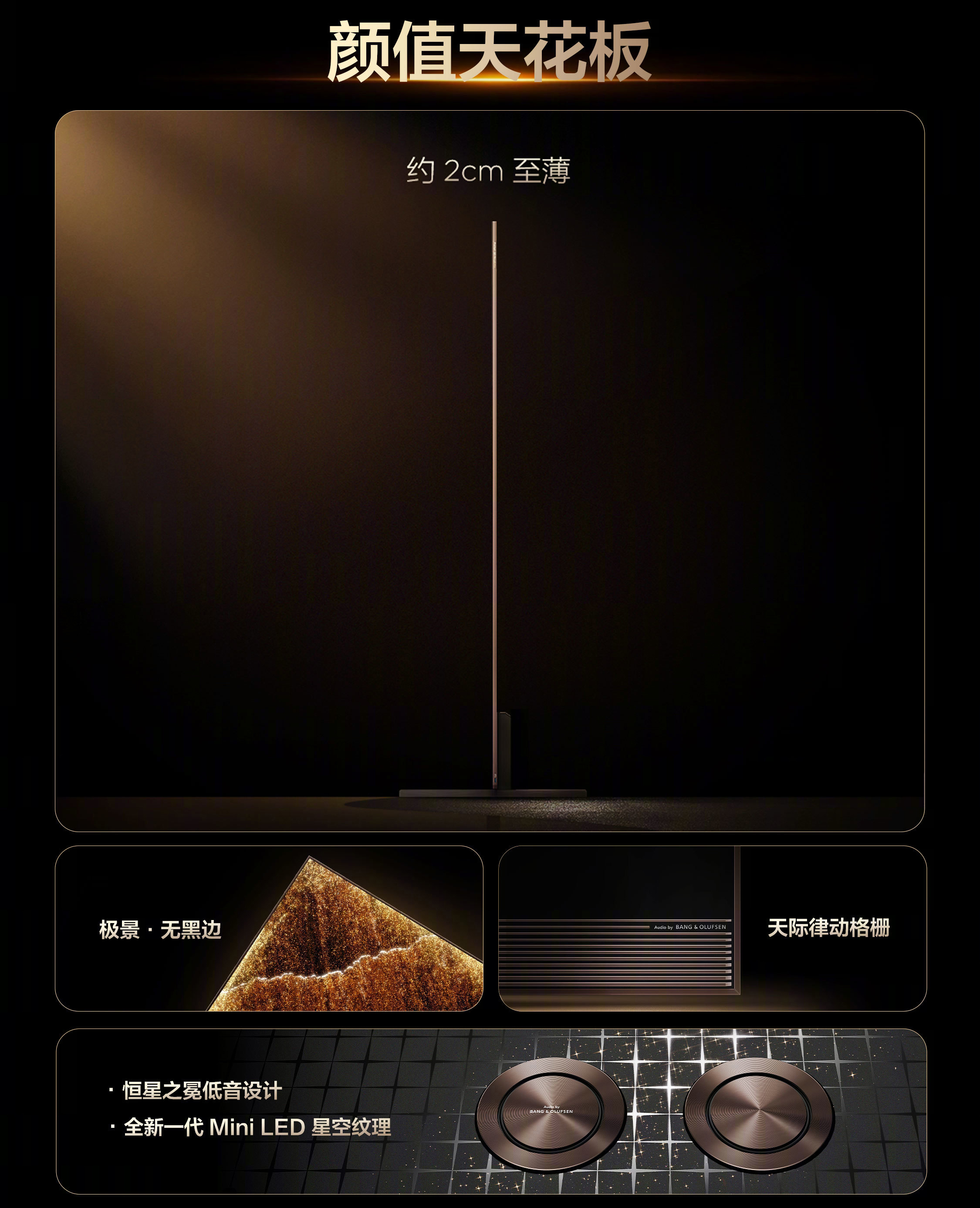 X11L的颠覆性同样体现在其工业设计上。约2cm的全球最薄机身,彻底改变了大众对高性能Mini LED电视笨重的刻板印象,使其宛如一件悬挂于墙上的艺术画作。这背后,正是SQD-Mini LED技术微距OD优势的直接体现,背后还有TCL整机元器件薄化和电路散热布局设计能力。而且还继承第四代液晶电视的“极景・无黑边”设计,通过天工架构等22项专利技术,实现了屏幕四边0黑边、0缝隙、极窄边框的视觉效果,屏占比接近100%,当屏幕点亮时,内容几乎充盈于整个视野,沉浸感被拉升到极致。这种将科技美学融入家居环境的设计理念,联袂世界CMF大师Chris Lefteri以银河为灵感打造的细节,让X11L成为提升家居格调的点睛之笔。