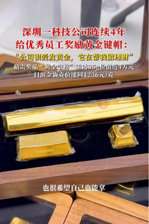 这种 “激励 + 保值” 的双重属性,精准击中了当代职场人的需求痛点。银行理财师张敏分析:“通胀压力下,现金年终奖会随时间贬值,而黄金近三年年均涨幅超 25%,成为企业福利的新选择。” 影石显然深谙此道:除了键帽,今年 7 月还为全体员工发放黄金盲盒,实习生也有份;结婚、生育的员工能领到足金金币,年会甚至抽奖送 50 克金条。这种 “黄金福利体系”,让影石有了 “黄金厂” 的外号。