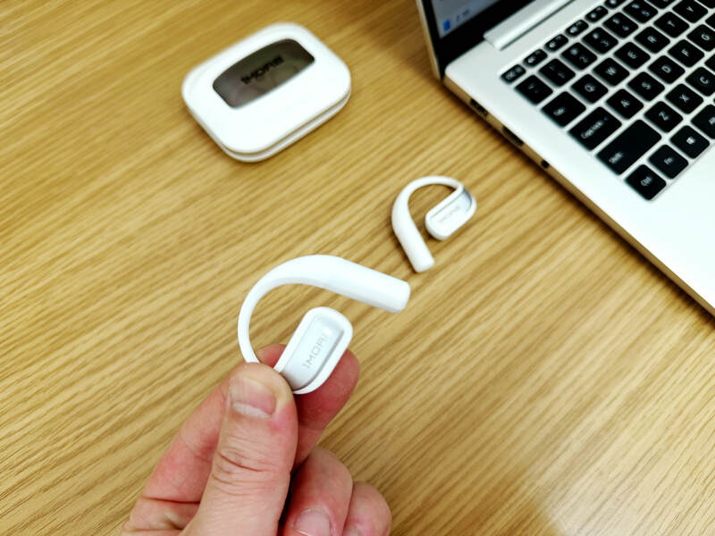 1MORE开放式耳机S70采用了轻巧、流畅的耳挂式设计,流线型的耳翼以及航天级别的镍钛记忆合金钢丝,任意弯折也不会变形,而且经过了官方10万次的弯折测试。耳挂部分也加强了3D几何弧度、三点式支撑设计,保证了佩戴的稳固性,即使是在运动过程中狂甩也不会轻易脱落。