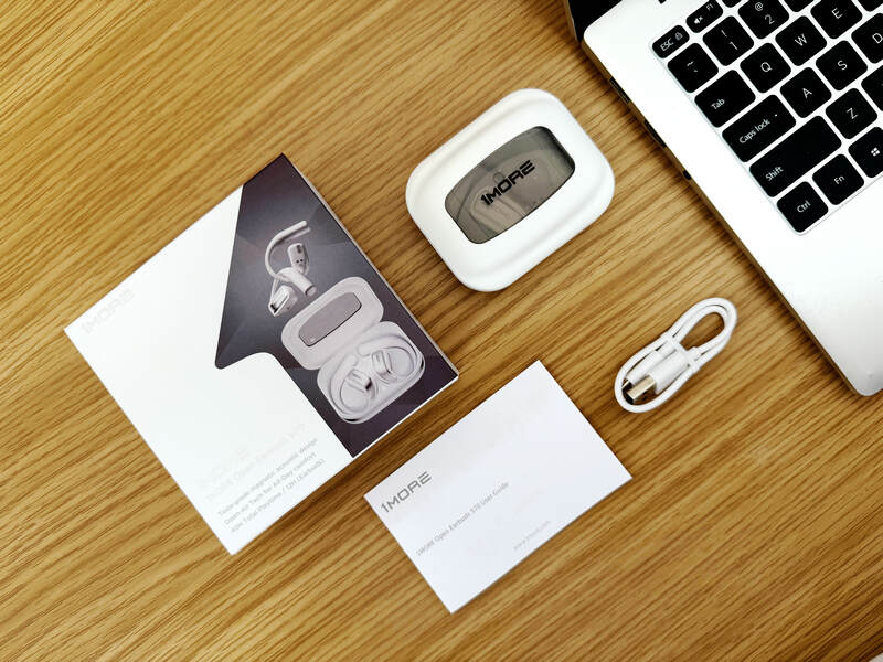 1MORE开放式耳机S70的外包装依然是1MORE的一贯风格,精致简约的礼品盒包装,正面直接展现耳机的外观渲染图和品牌系列号。整机内含耳机一副(含充电收纳仓),充电线一根,使用说明书一本。