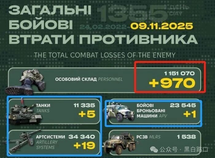 俄乌战争第1355天(2025年11月9日),过去24小时大事件概述如下: