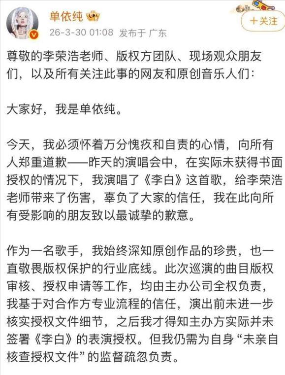 就在两边吵得越来越凶、舆论快要压不住的时候,单依纯很快就发了道歉文,态度看着挺诚恳,但这波道歉,并没没能把这场争议压下去。