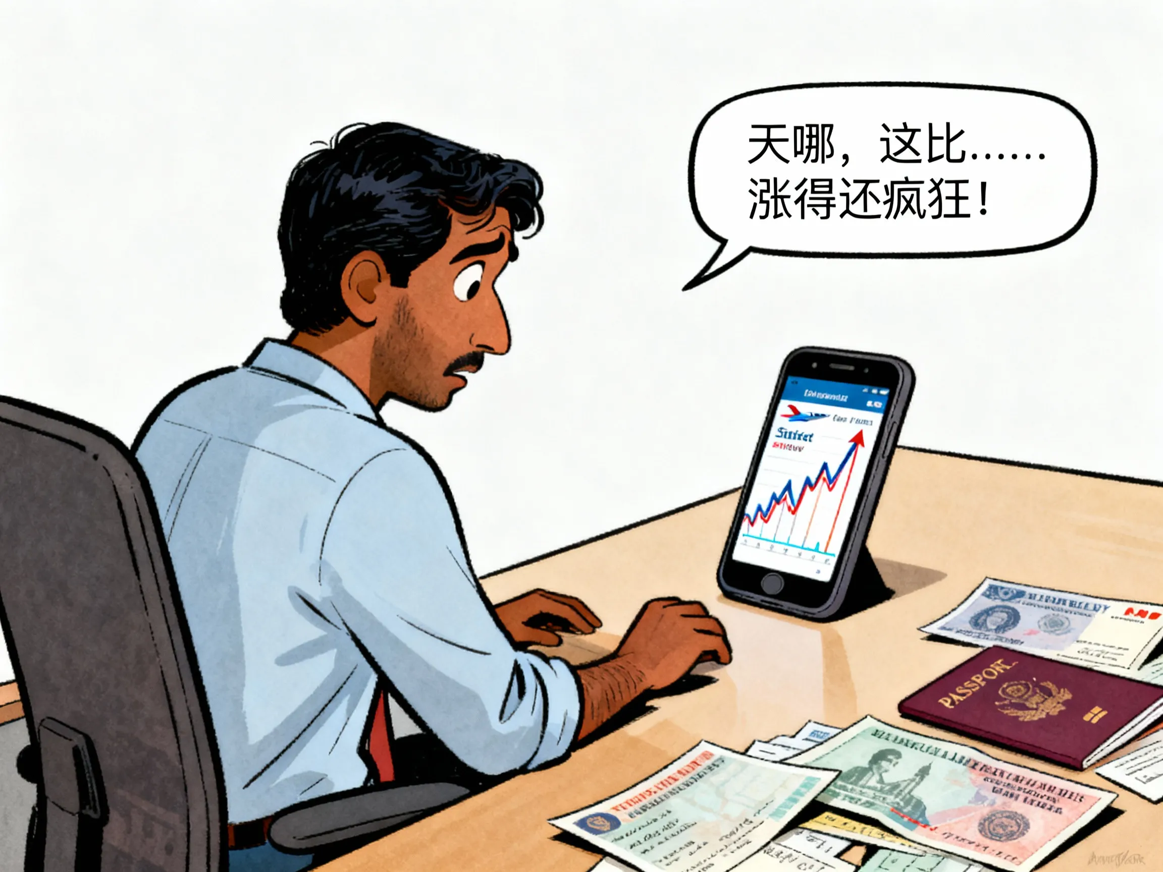 两天前,一些在海外工作的印度工程师,手机屏幕上的数字让他们心里一沉。从新德里飞往纽约的航班,价格在眼前疯涨。几乎是眨眼之间,一张票就从3.7万卢比跳到了8万卢比,翻了一倍还多 (来源:India Today)。