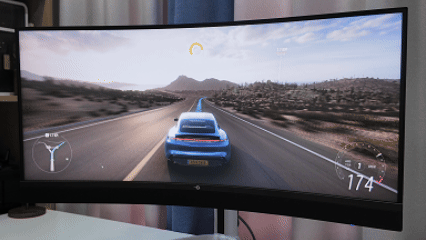 而在《极限竞速:地平线 5》这类赛车游戏里,优势更明显——1500R曲面屏带来的沉浸感,让我仿佛坐在驾驶座上,视野能轻松覆盖整个赛道。色彩表现也非常亮眼,墨西哥荒漠的橙红色落日、雨林的翠绿植被都格外鲜活。