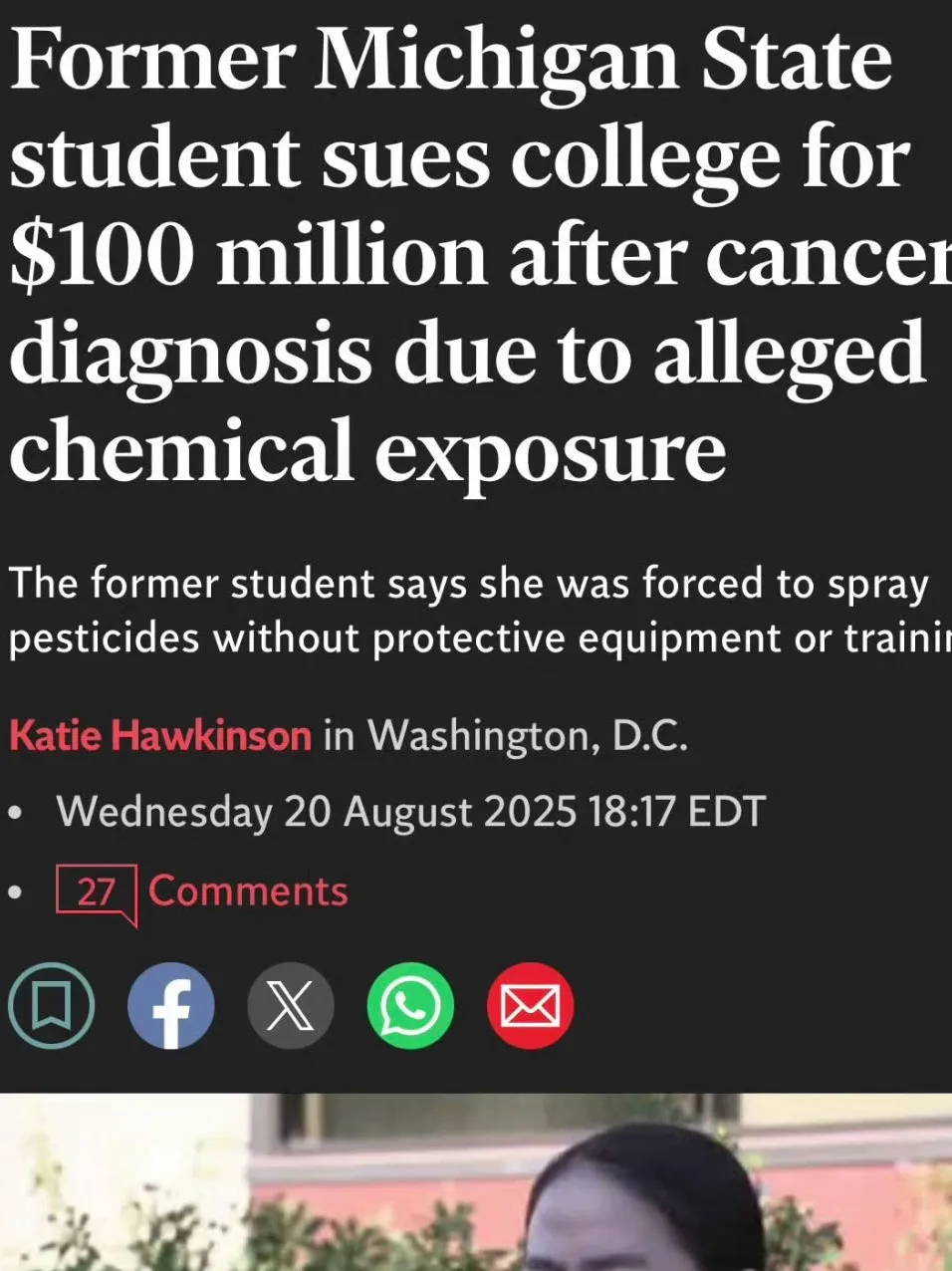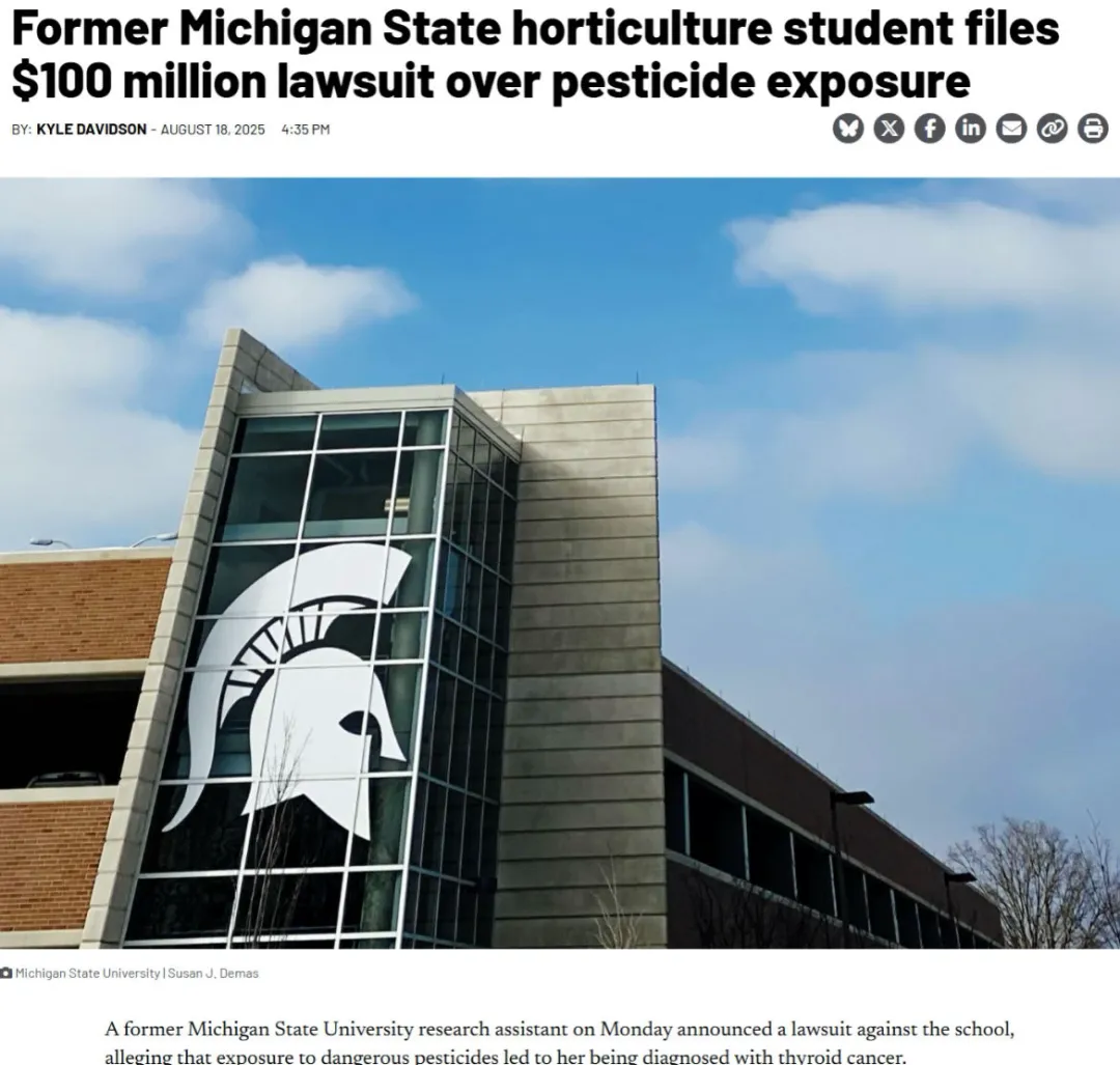 在美国密歇根州立大学的校园里,中国留学生魏玲珑曾经怀揣着对学术的热爱与梦想,却未曾想到,这段求学经历竟成为她人生中一场噩梦的开端。近日,她正式起诉母校,索赔1亿美元,指控校方在其攻读园艺硕士学位期间未能规范有毒化学物质的使用,导致她罹患甲状腺癌,人生彻底颠覆。这一事件不仅是个人的悲剧,更引发了人们对高校科研安全、国际学生权益的深刻思考。