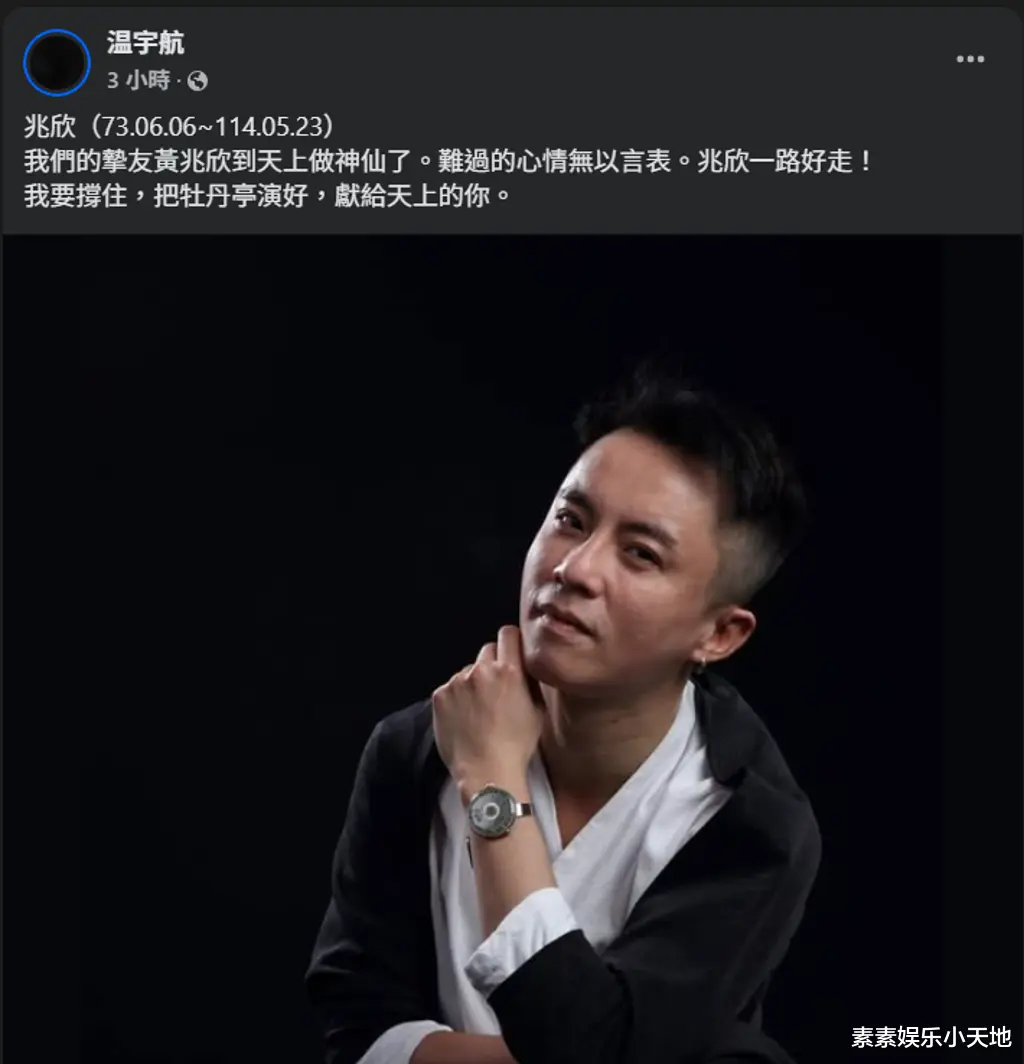 发文:“我们的挚友黄兆欣到天上做神仙了。难过的心情无以言表。兆欣一路好走!”