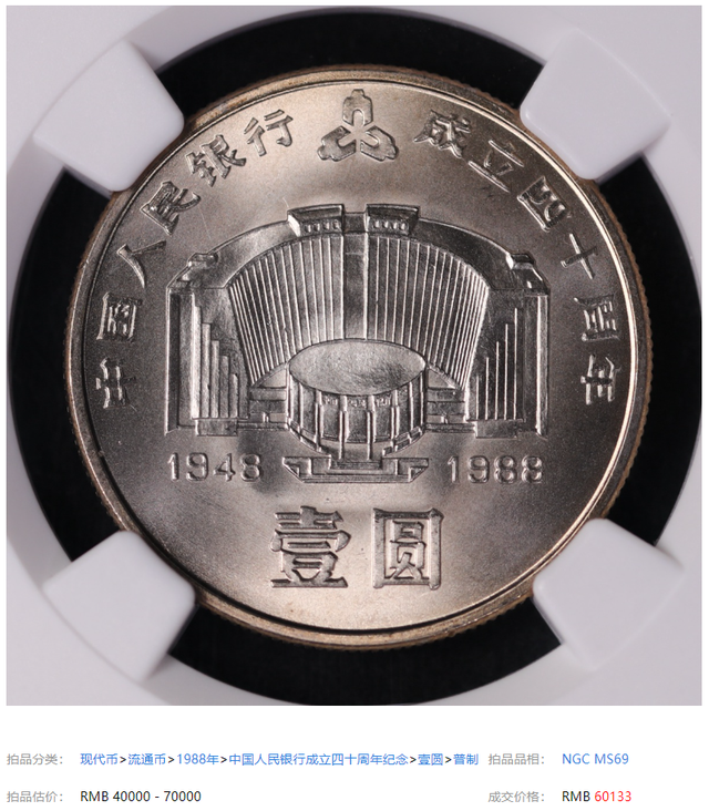比如上面这枚NGC69分的高分绝品建行币,就依然能拍出6万多。