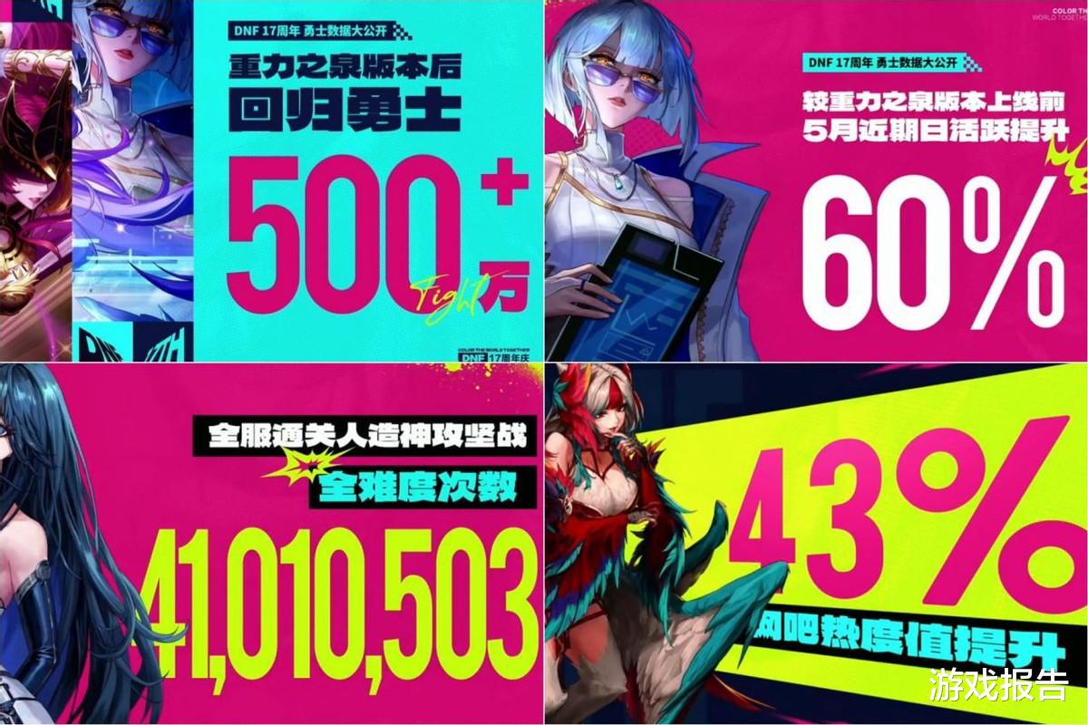 其实回坑潮在重泉版本就已经有迹可循,从17周年庆直播中给出的数据显示,重泉版本之后已有500万勇士回流,5月的日活率提升60%,网吧热度值上升了43%,人造神团本通过次数达到了4000万+次,让如今在玩家眼中已是牛夫人的DNF,又变回了当初那个小甜甜。