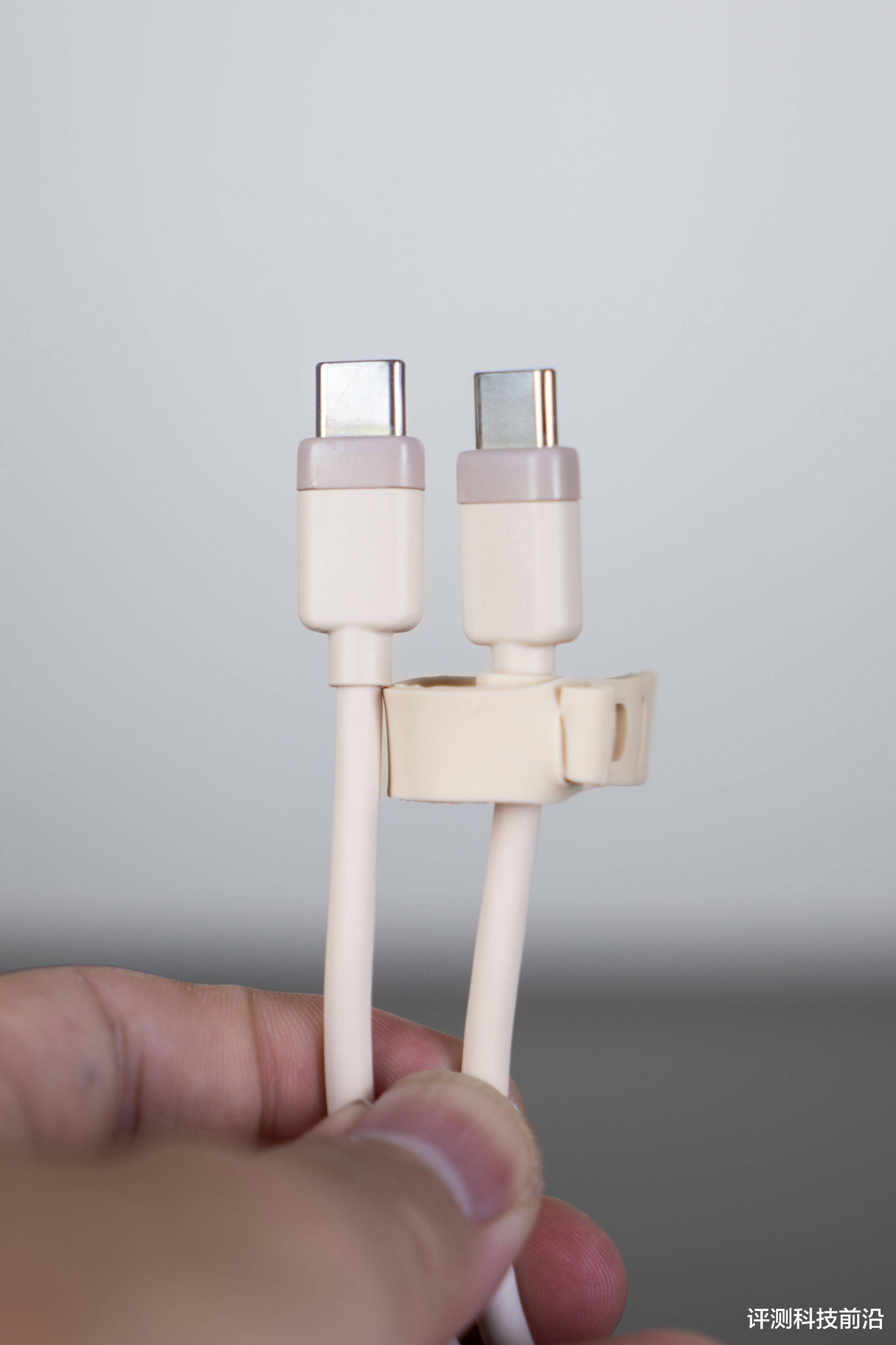 ▼套装标配的双C线配色和充电头是一样的,线材是亲肤手感的液态硅胶材质,很柔软不容易打结,还很贴心的设计了硅胶收纳扎带