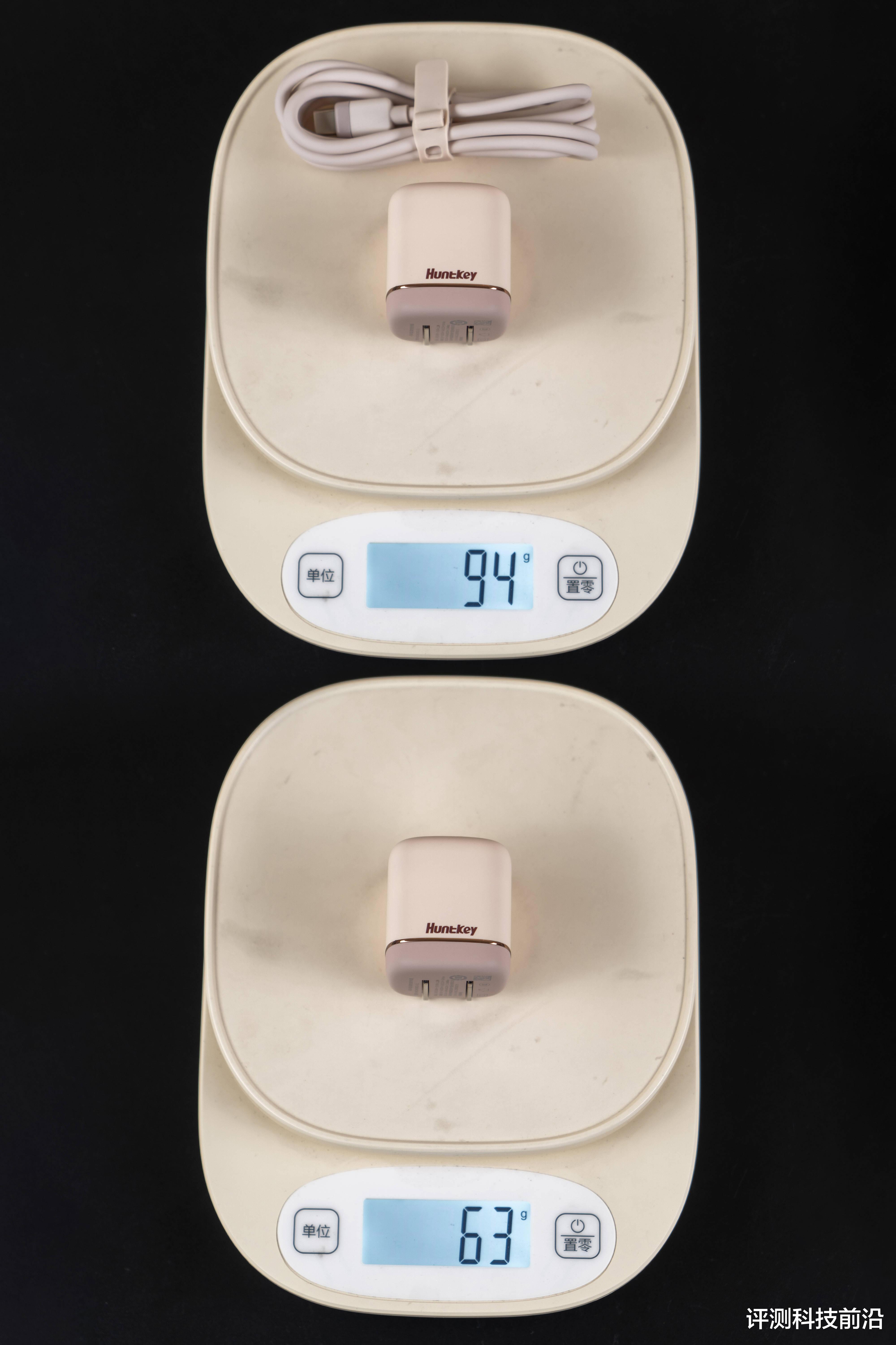 ▼称一下重量,单充电头大约为63克,数据线31克左右,很轻便,随身携带没啥问题