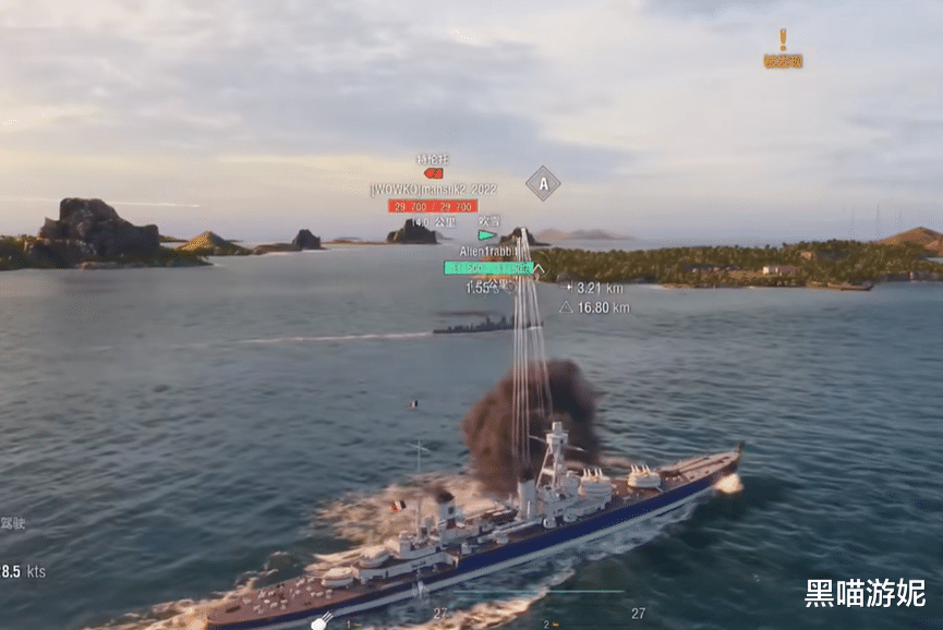 还有一点必须得夸夸,那就是土伦机动性也是很好的,30节的裸速,还能使用引擎增压消耗品抬到36节,再加个旗子,轻松到37.6节左右。它710的转向半径,加上6.72推重比,转弯时也不会太笨重,不过注意一点是这船的船身较长,导致受弹面积变大,加上它没有灭火不具备扛线能力,千万注意不要被集火!