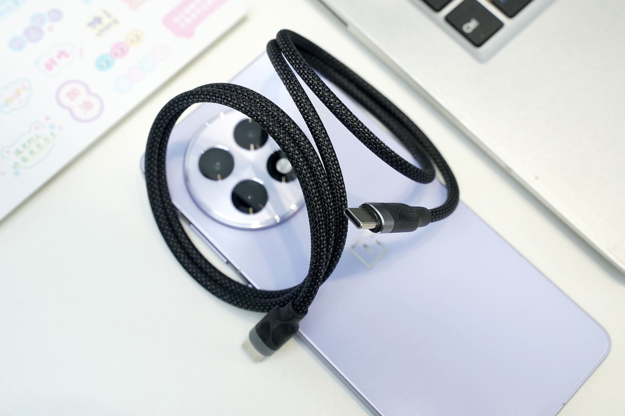 西圣K1摒弃了传统线材的廉价感,以航空级灰黑混编工艺打造“暗物质美学”风格,线身纹理细腻,触感冷峻却不失柔和。波浪纹硅胶插头设计不仅增强摩擦力,方便汗手用户盲插,更将单手操作成功率提升80%。无论是搭配极简风桌面,还是随手放入通勤包,它都能成为吸睛的科技潮品。