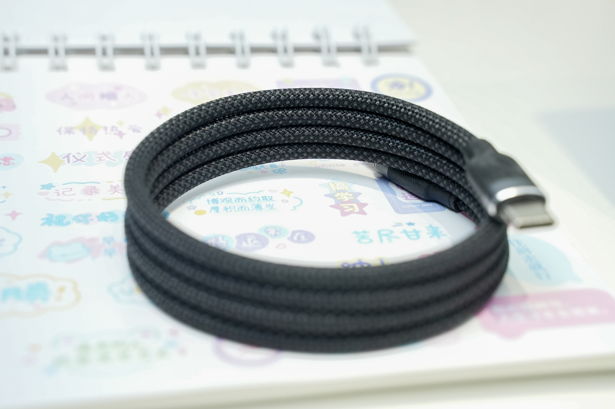 你是否经历过从包里掏出一团“乱麻”般的充电线?西圣K1的磁吸自收纳系统正是为此而生。通过内置钕铁硼永磁体动态吸附阵列,线材可瞬间从1米长度自主蜷缩成规整的甜甜圈形态,实现“秒收不缠结”的魔法效果。无论是塞进背包与钥匙共处,还是骑车颠簸,它都能保持形态稳定。更令人惊喜的是,其磁吸模块支持伸缩自如,使用时轻轻一拉即可延伸至所需长度,无需手动绕线,彻底告别传统线材“理线5分钟,使用2秒钟”的尴尬。
