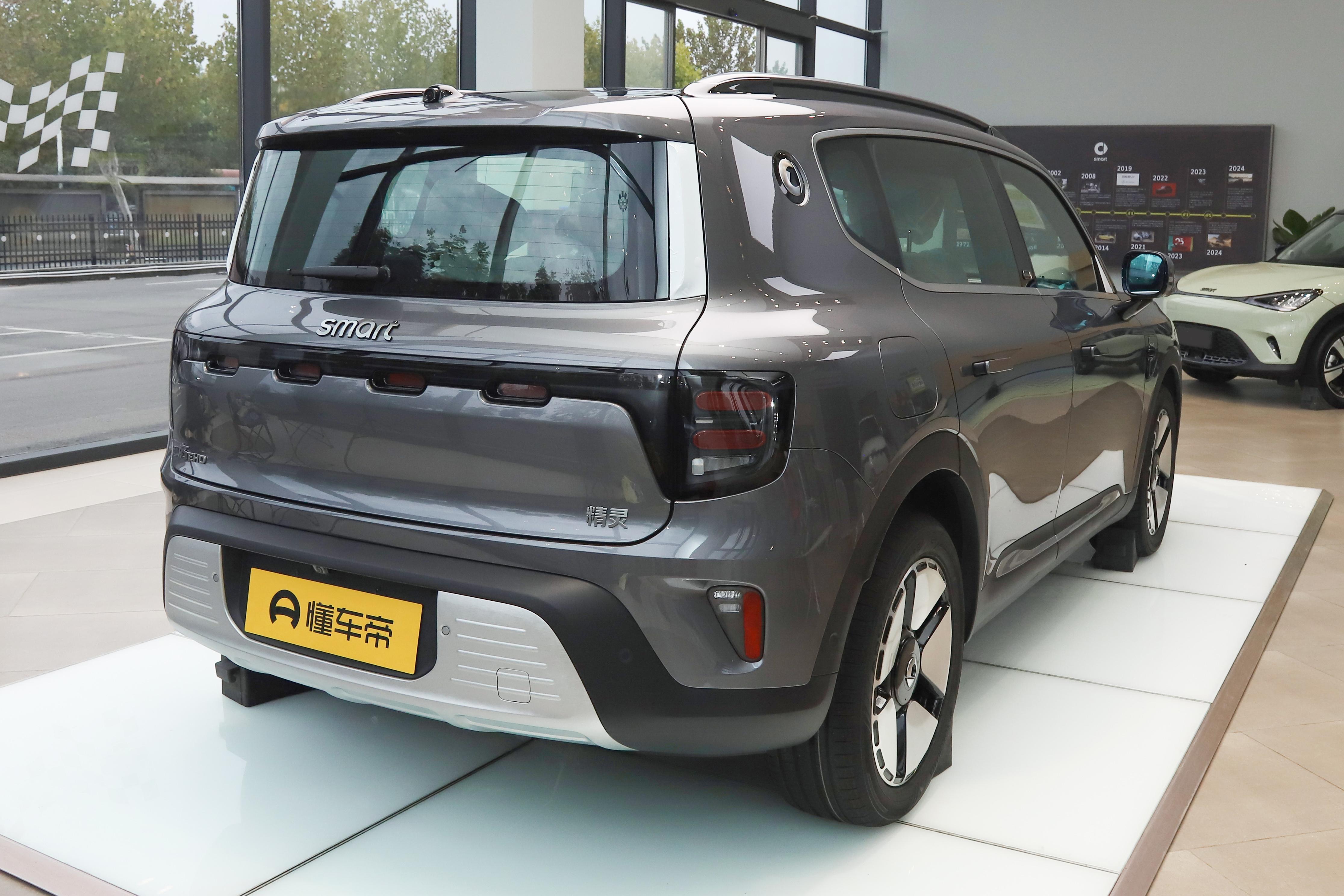 smart#5 EHD延续了家族“方中带圆”的Boxy设计语言,却在中型SUV的体量里玩出了新花样。梅赛德斯·奔驰全球设计团队操刀的造型,把“感性·灵锐”理念藏在了每一处细节里 。前脸采用封闭式造型,贯穿式LED矩阵大灯里藏着断点式灯带,晚上点亮时辨识度直接拉满;前包围的哑光拉丝格栅添了几分硬派气息。