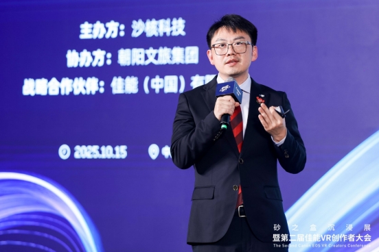 在2025砂之盒沉浸展暨第二届佳能VR创作者大会的开场致辞中,佳能(中国)有限公司影像信息商务产品企划及营销部项目副总经理栗开宇表示,VR与空间视频技术正深度重塑人与世界的连接方式,佳能作为VR设备与解决方案提供者,始终聚焦“实拍”核心,坚信真实记录与先进技术结合能打造打动人心的沉浸体验。本届大会不仅展示EOS VR SYSTEM等前沿技术与新品,更致力于搭建行业交流平台,推动思想碰撞与创意孵化,携手创作者共同促进中国VR内容生态的繁荣与行业进步。