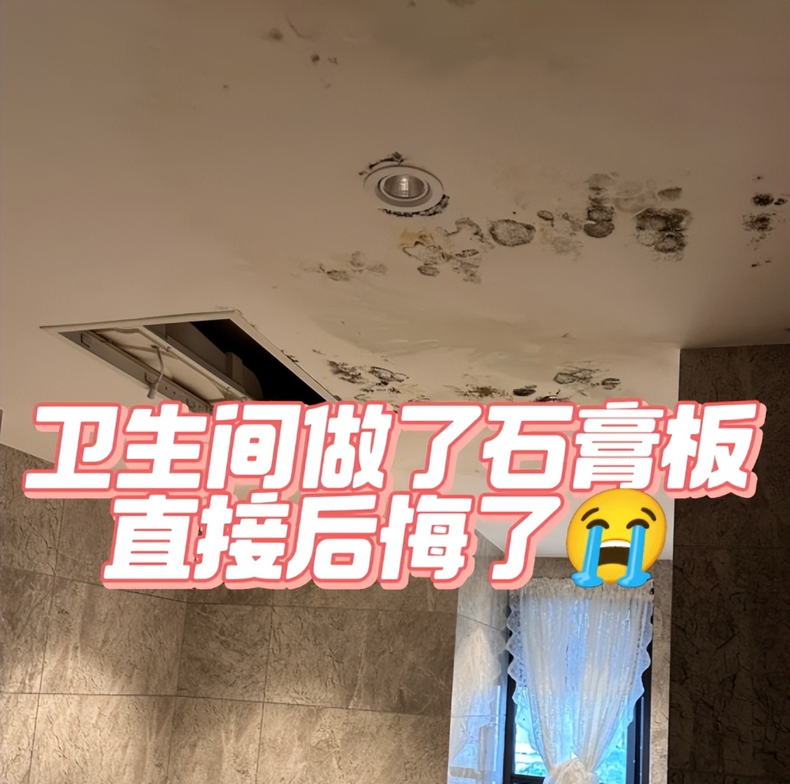 卫生间本身就很潮湿,经常用水后,它里面受潮会很严重,而石膏板吊顶由于材质问题,它慢慢会受潮严重,到时候会发现石膏板吊顶有水渍、发黄、霉菌等等,处理起来很费事。