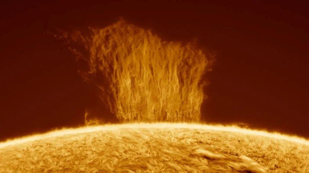天文学家对日珥感兴趣的一个原因是,它们与日冕物质抛射有关。日冕物质抛射指的是太阳表面产生的巨大等离子体羽流,抛出的等离子体如果击中地球会引起严重后果。