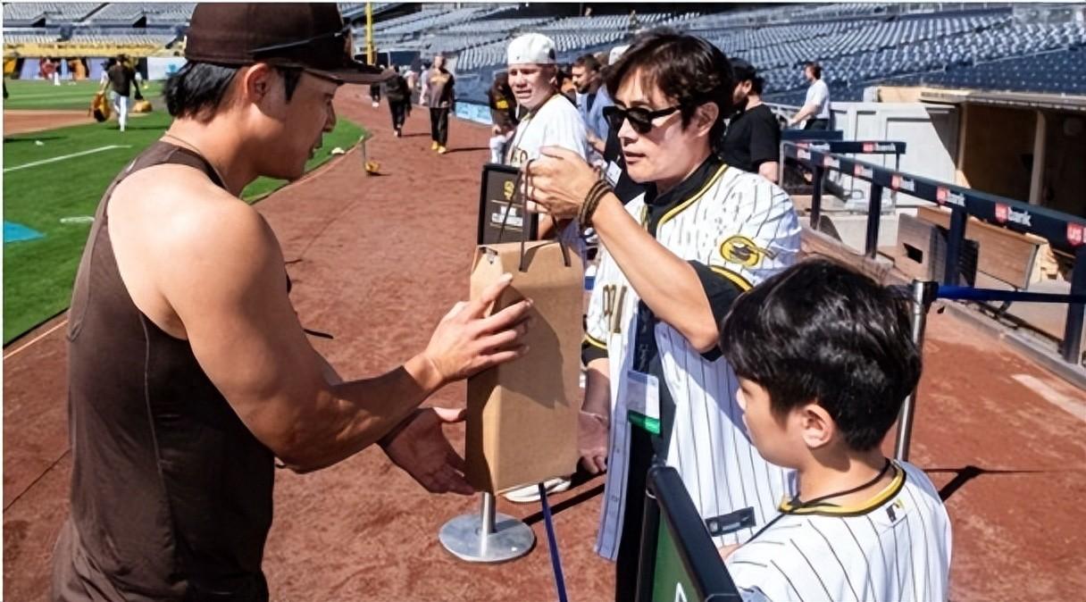 帅气的李秉宪出席儿子的棒球赛事,亲自下场为儿子加油打气。