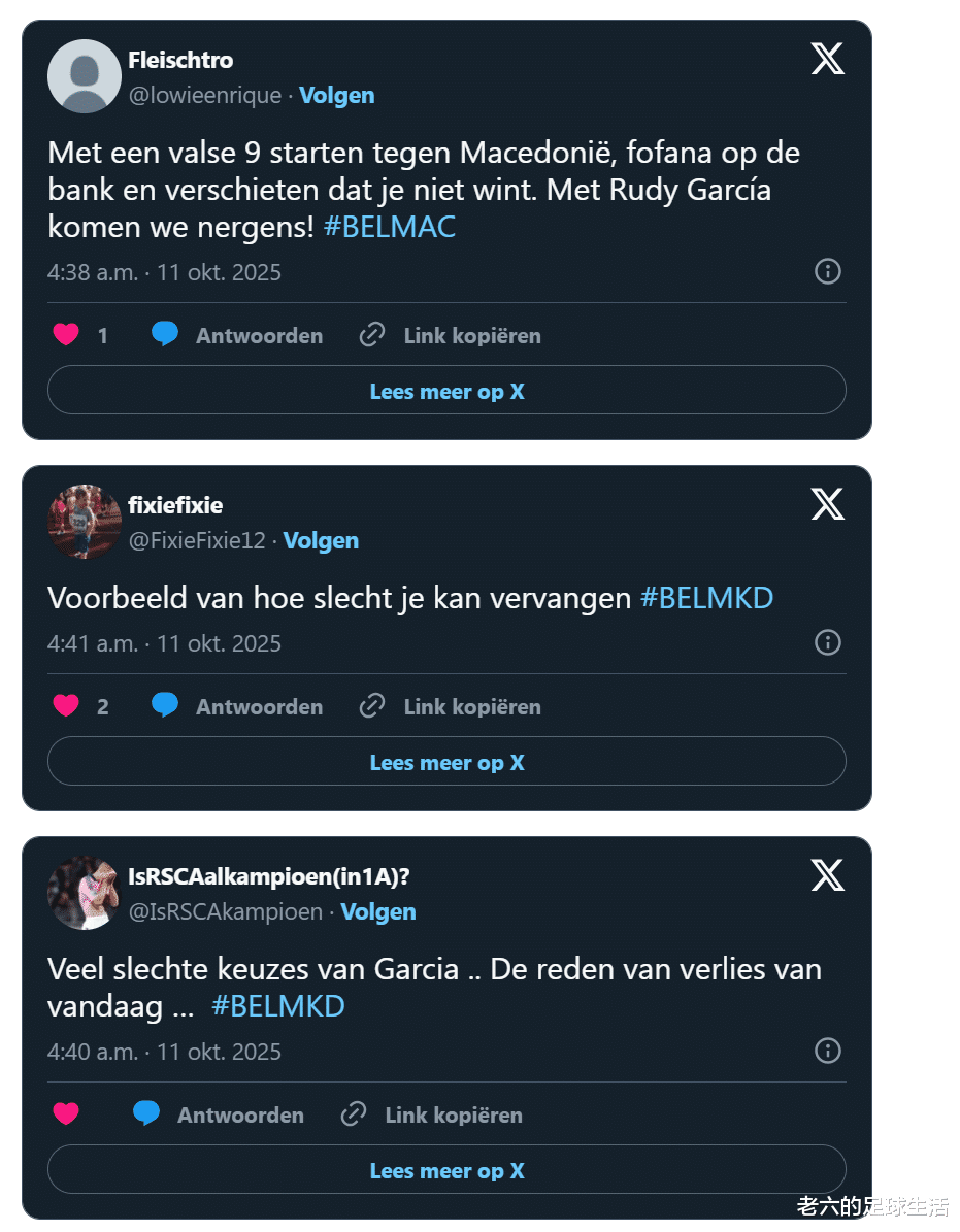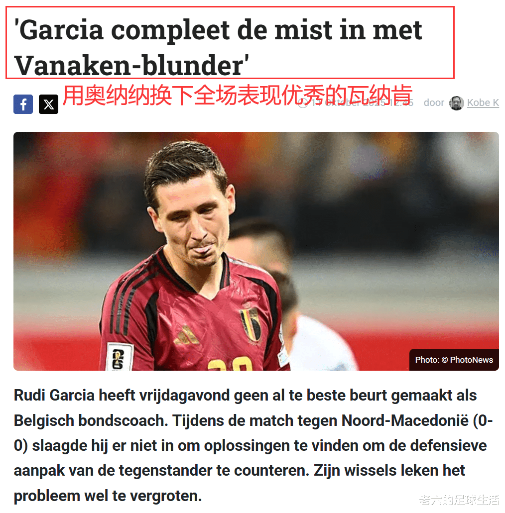 比利时在前几天与北马其顿的赛后,主教练加西亚被球迷们喷了个狗血临头,他的个人社媒上充斥着红魔球迷的咒骂与不解。