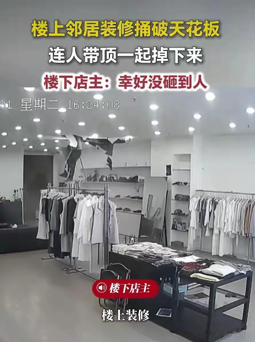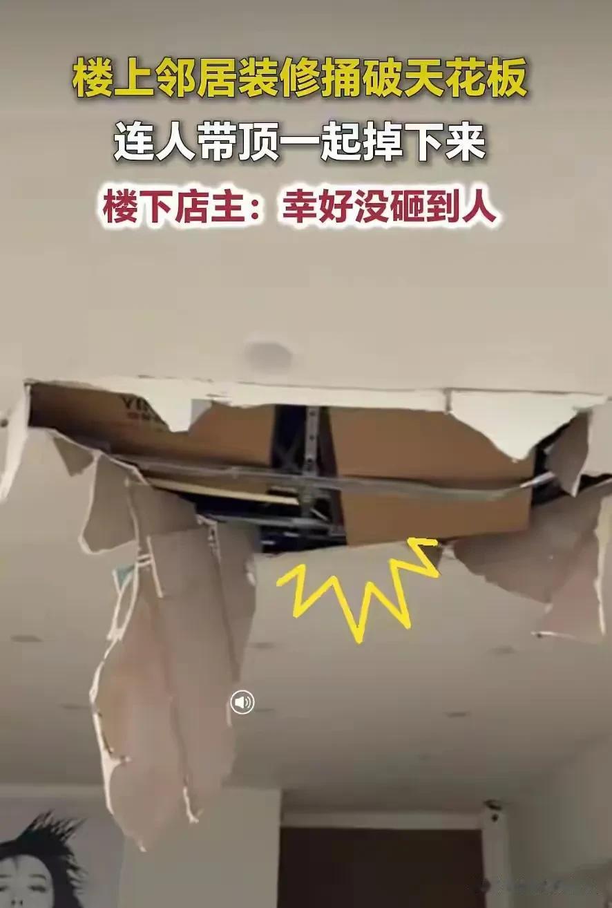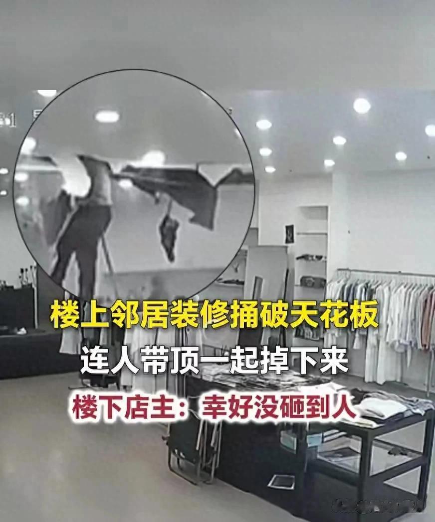 个人感悟装修工人从楼上掉下来,砸穿天花板,这事儿要是发生在白天,店里有人,那后果不堪设想。