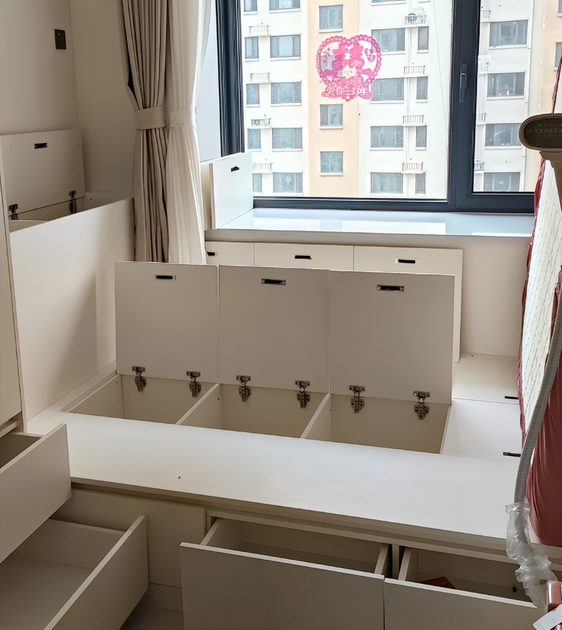 而且说是储物,东西全都塞在榻榻米下面,拿东西一点都不方便,不管是抽屉也好,还是整个榻榻米掀起来也好,放也不好放,拿也不好拿,很鸡肋。