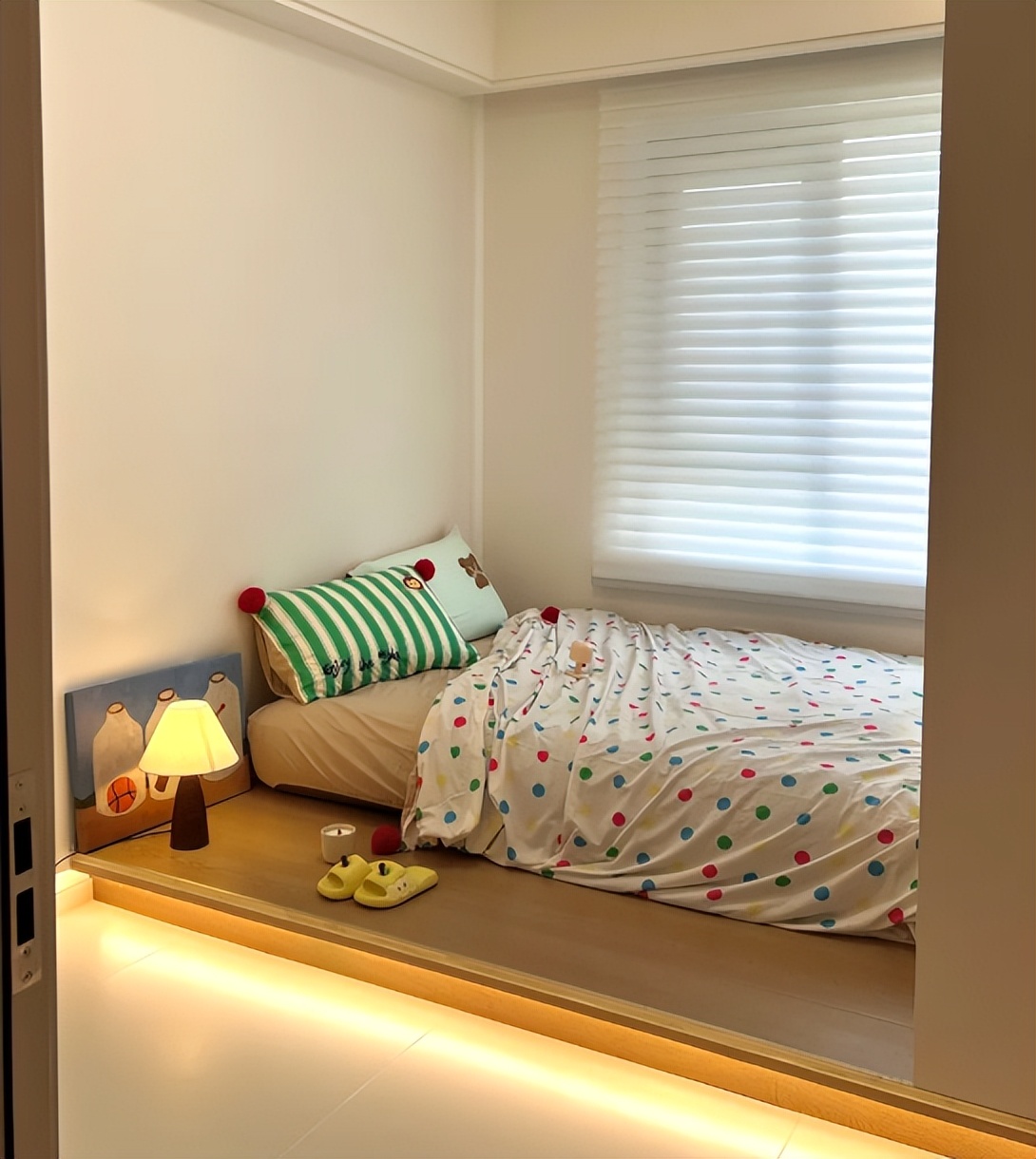 如果大家喜欢更高级的设计,那么可以在装修阶段,直接做一个地台床。