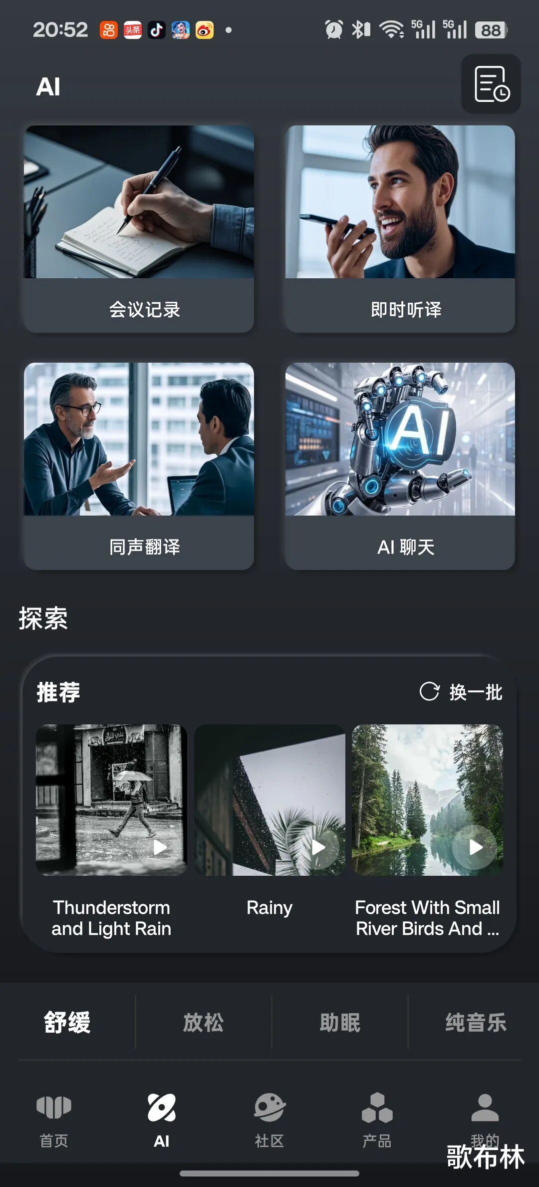 APP里的AI功能同样给我留下了十分深刻的印象,会议记录可以实时把各国的语音转换成文字,即时听译和同声翻译可以在各种语言之间做互译(可以文字/语音形式呈现出来),这些AI功能在记录、互译的灵敏度上都非常高,很有实用价值。但是“AI聊天”这个即时聊天AI就有点不太尽人意了,反应比较迟钝,回复速度偏慢,希望厂商能通过固件更新之类的方式,让AI聊天变得更聪明。