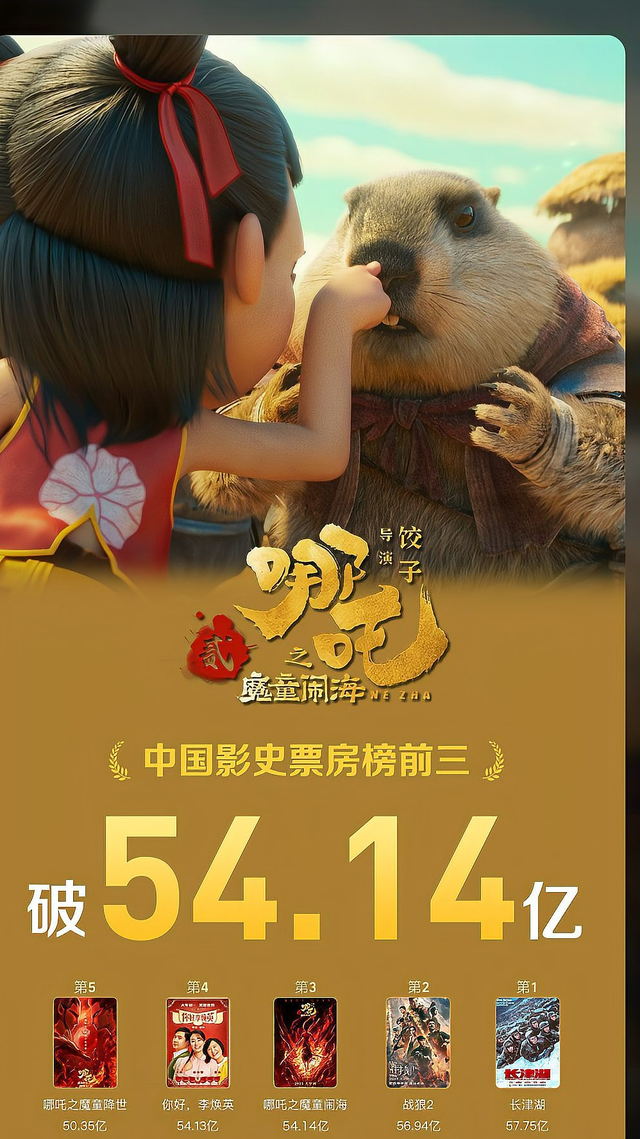 作为万众瞩目的动画续作,《哪吒之魔童闹海》自 2025 年 1 月 29 日在中国大陆震撼上映以来,便凭借扣人心弦的精彩剧情、堪称一绝的精良制作以及鲜活立体、深入人心的角色塑造,迅速收割观众的喜爱与好评,票房一路高歌猛进。而《你好,李焕英》作为一部以温情为底色的喜剧佳作,此前凭借真挚动人的情感表达,戳中无数观众的内心,缔造了票房神话,成为影史经典。