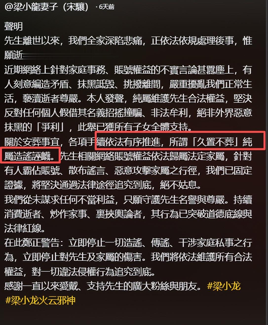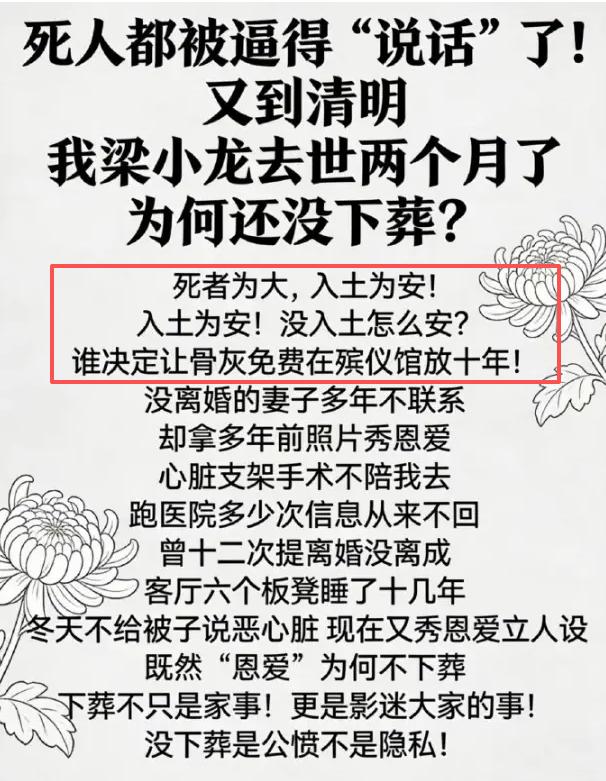当初还总有人笑话大s不体面,死后来来回回拉扯了一个多月才正式下葬,结果和如今的梁小龙比起来,大s反而体面多了,