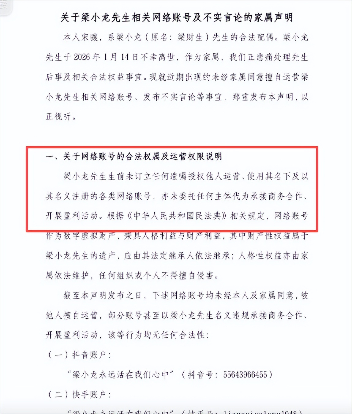 这回想要账号了,又秒变脸成了纯爱战士,且他表示得到了梁小龙的生前授权,是可以暂时保留的。