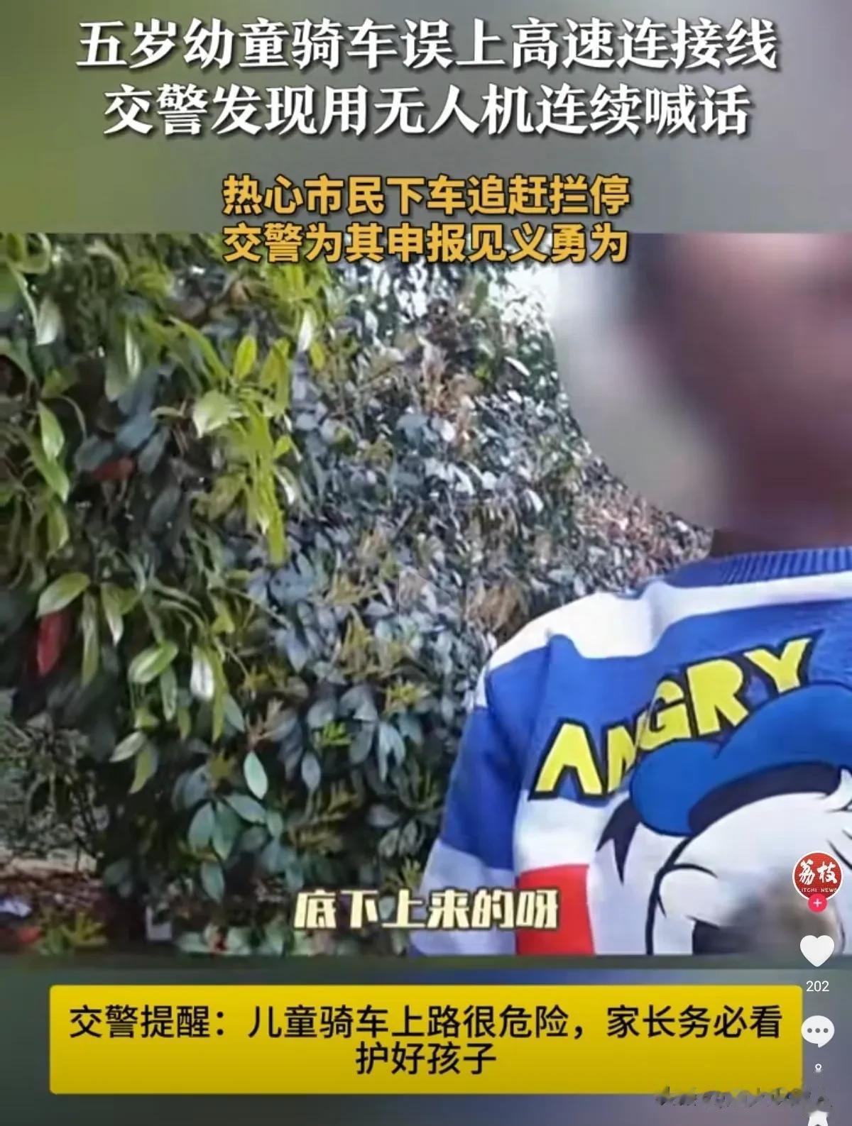 那个5岁的孩子,骑着童车在高速上逆行,旁边车流呼啸。